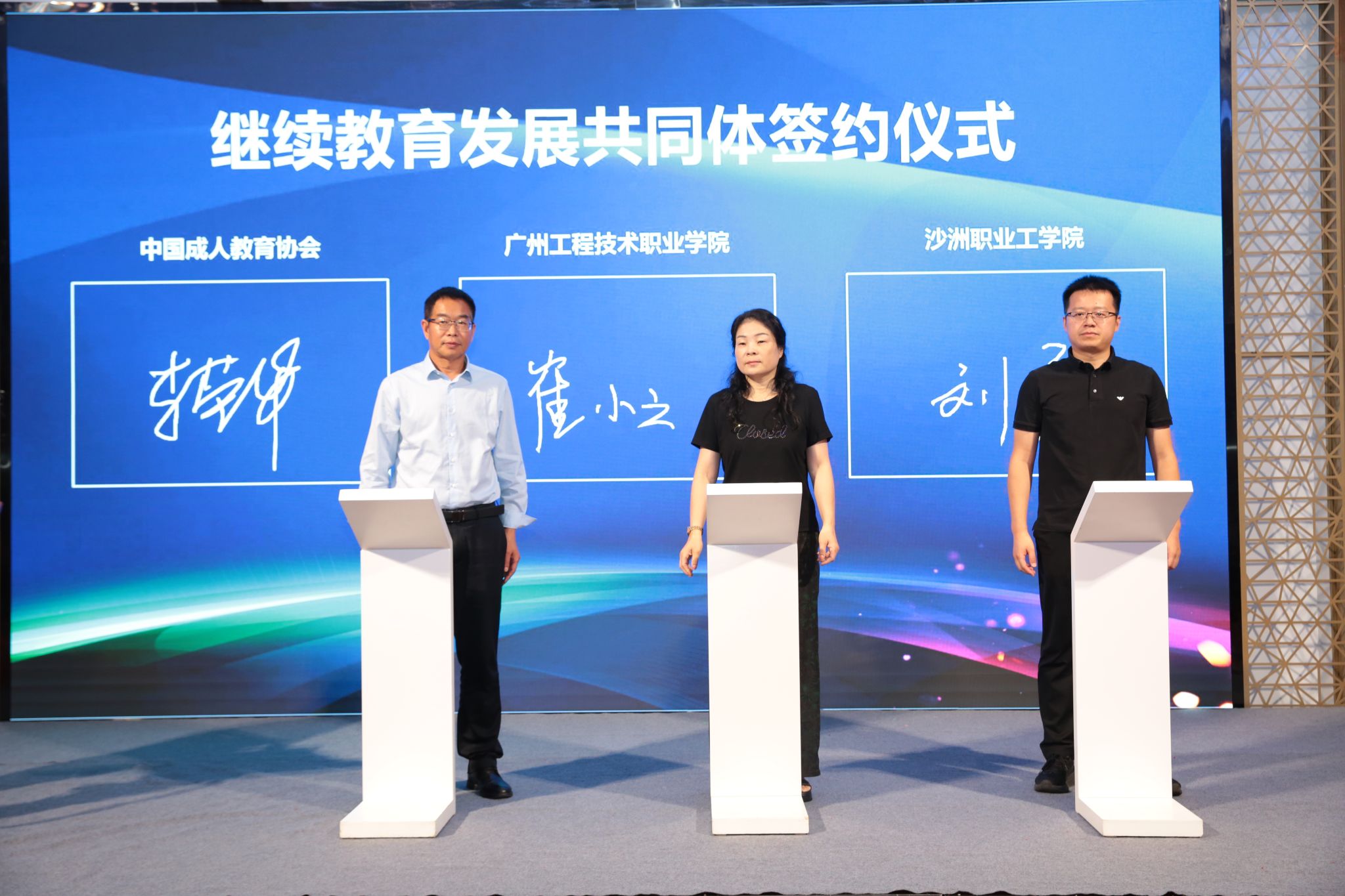 2025年6月6日 在线播放,中国成人教育协会在绍兴举办2025年继续教育发展共同体项目工作推进会议,我校对外交流合作(继续教育)处负责人代表免费不收费看污在线观看-免费看污污-免费看污污污视频软件与辽宁工程技术大学和上海农林职业技术免费不收费看污在线观看-免费看污污-免费看污污污视频软件现场签约,我校被推选为“‘乡村振兴’——终身科普教育项目共同体”组长单位。