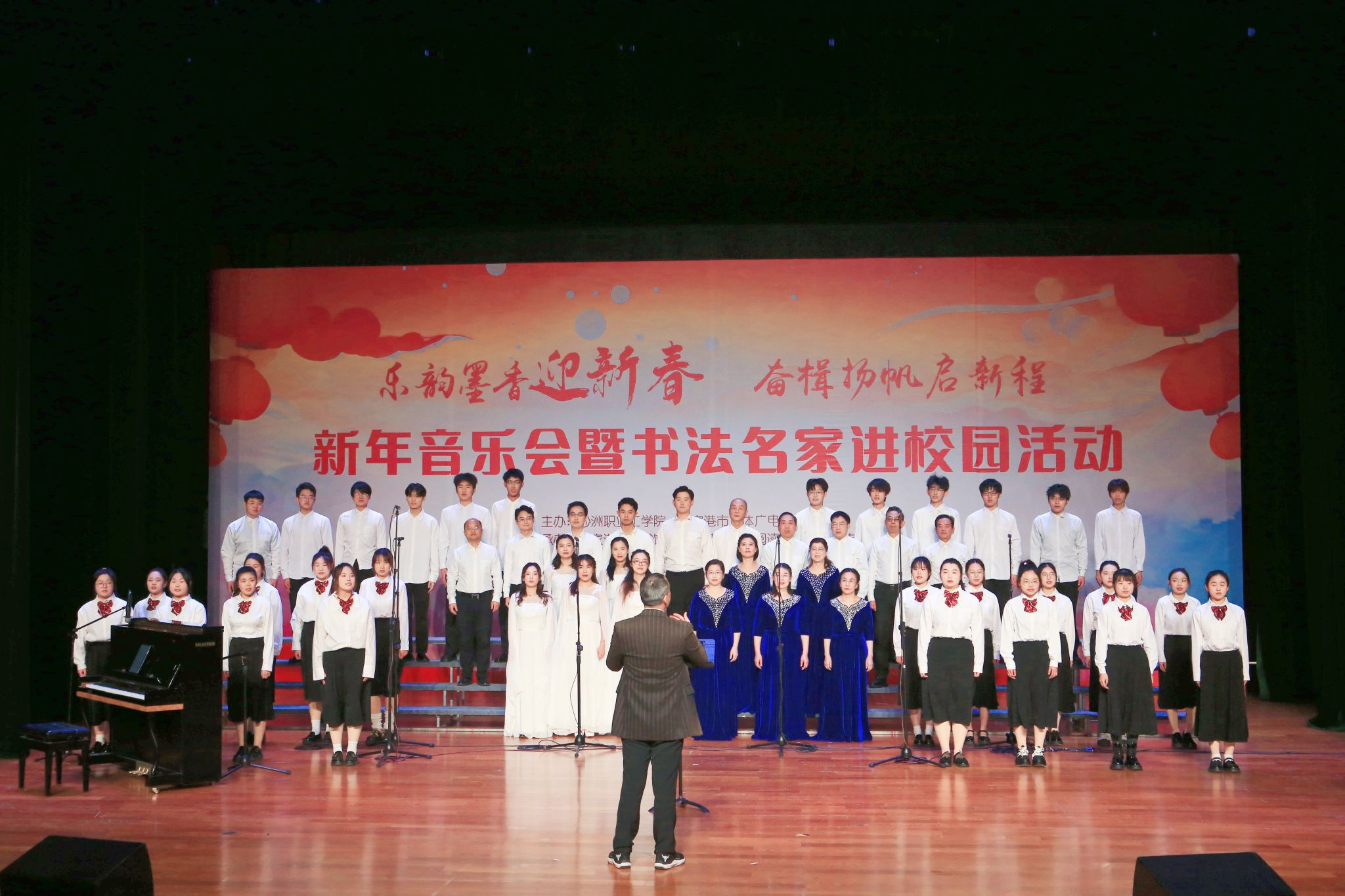 12月29日下午,“乐韵墨香迎新春 奋楫扬帆启新程”新年音乐会暨书法名家进校园活动在我校大学生活动中心举行,活动现场,书法名家们齐聚校园,为师生书写春联并送上新年祝福 91视频网,免费不收费看污在线观看-免费看污污-免费看污污污视频软件党委书记钱锦东在新年音乐会上致新年贺词,沙工师生合唱团和张家港市爱乐合唱团带来精彩合唱节目。