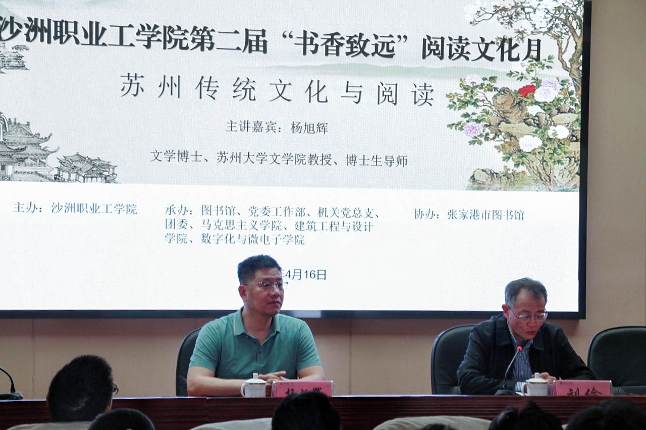 4月16日下午,苏州大学杨旭辉教授应邀来我校做《苏州传统文化与阅读》主题讲座,讲座在我校图书馆报告厅举行,150余名师生代表一起聆听了讲座 91视频网。