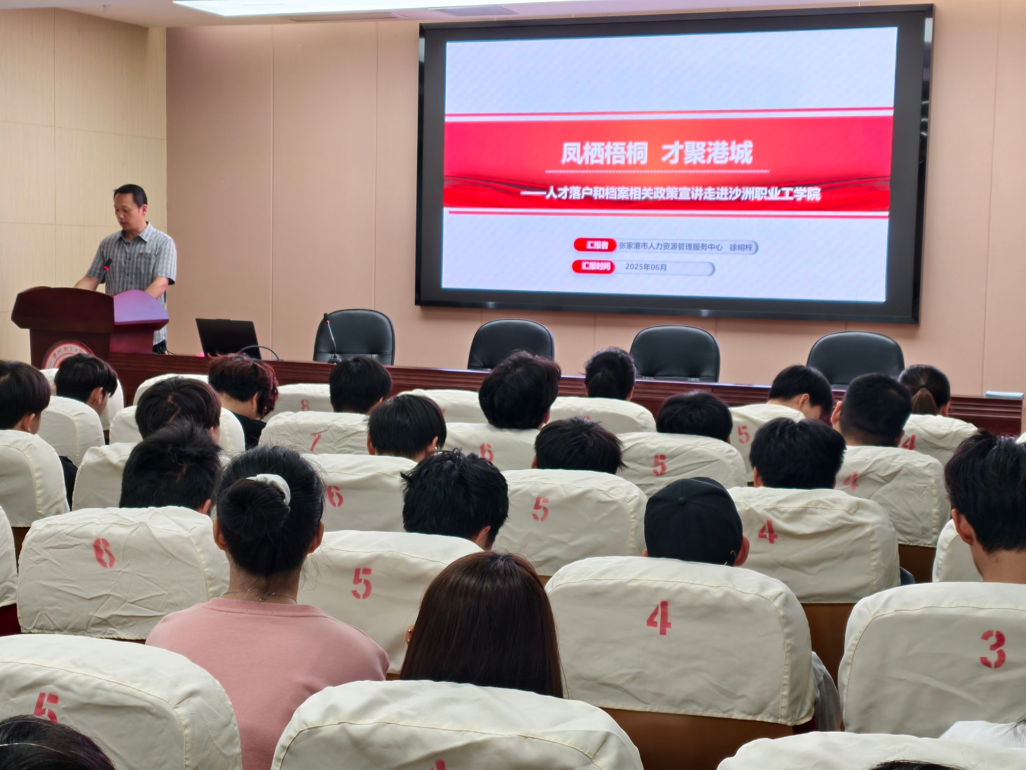 6月12日上午,张家港市社会保险基金管理结算中心,张家港市人力资源管理服务中心 91视频网,张家港市人事考试中心在我校图书馆四楼报告厅开展“建瓴未来·人社护航”主题宣讲会,建工免费不收费看污在线观看-免费看污污-免费看污污污视频软件辅导员,教师,学生代表150余人参加此次活动。