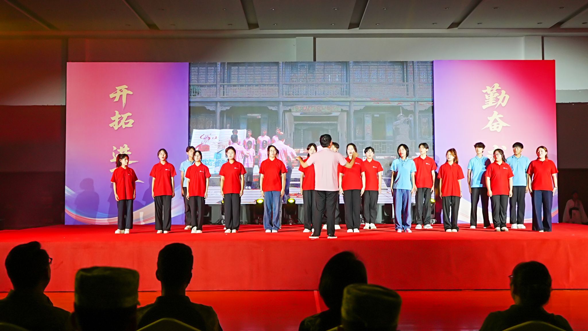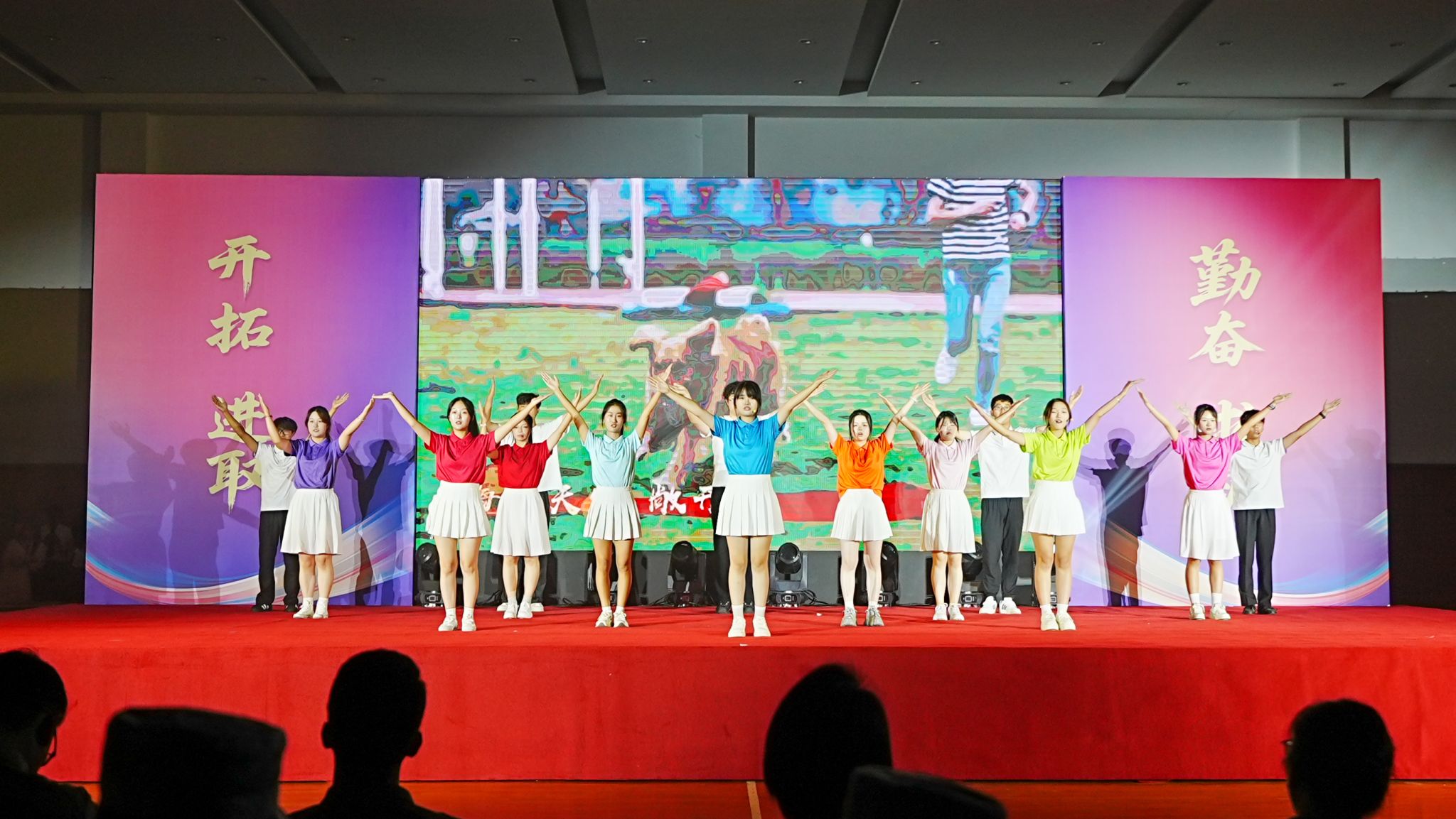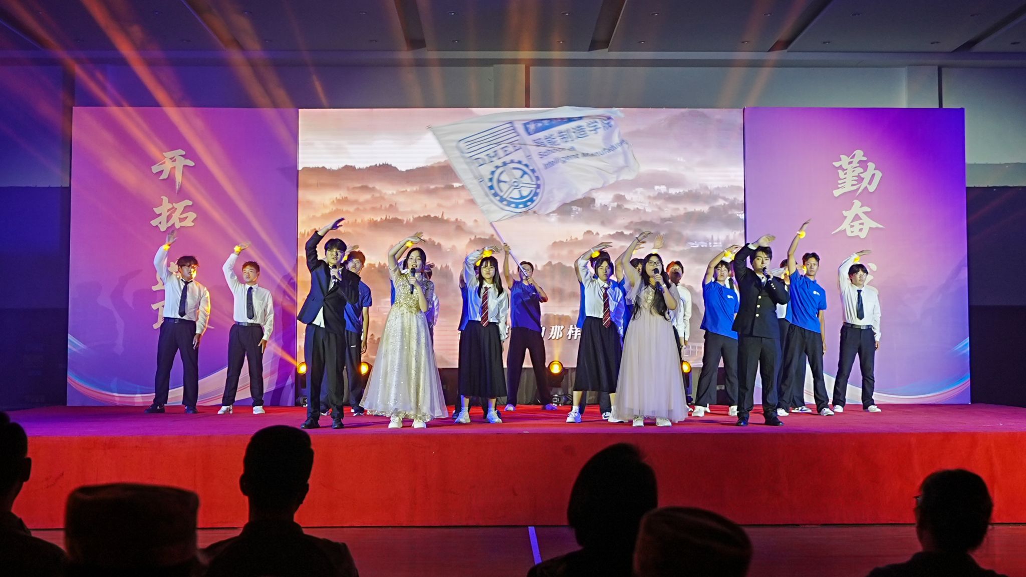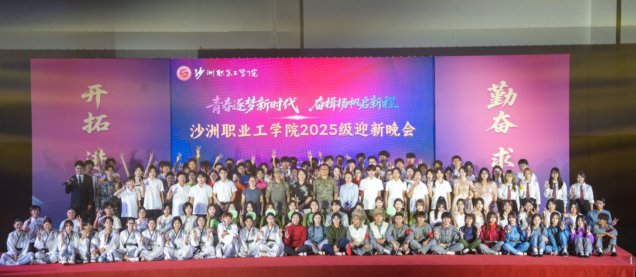 9月29日晚 91视频网,“青春逐梦新时代 奋楫扬帆启新程”2025级新生迎新晚会在校体育馆举行,承训部队教官,学生处,保卫处,团委,各二级免费不收费看污在线观看-免费看污污-免费看污污污视频软件负责人,辅导员,新生班主任及2025级全体新生一同观看演出,晚会设主会场和分会场,采用现场和直播方式同步进行。