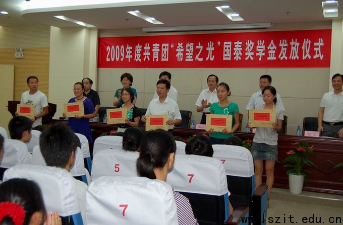 2009年度共青团“希望之光”国泰奖学金颁发仪式于8月28日上午9:30在我院图书馆五楼报告厅举行。
