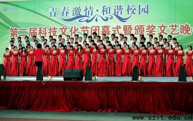 出席本次晚会的嘉宾为科技文化节各项比赛颁奖 91天堂国产在线,并与学生,演员合影.