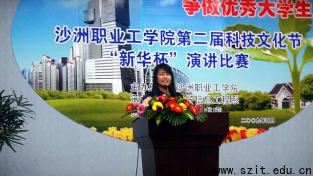 4月13日晚,行政楼报告厅内内掌声阵阵,以“学习科学发展观,争做优秀大学生”为主题的“新华杯”演讲比赛正在这里举行。由我院电子信息工程系承办的本次比赛目的是深入学习科学发展观,宏扬先进校园文化,建设和谐校园。