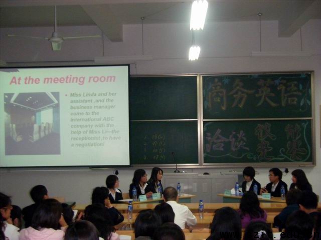 4月15日晚,我院基础科学系在E区104举办商务英语洽谈技能比赛决赛。初赛中脱颖而出的八组选手,重新组合成四个代表队参加本次决赛。