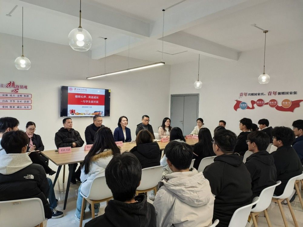 11月21日下午,我校在学生社区服务站召开2025级学生代表座谈会,党委委员 91视频网,副院长陈海英及教务处,学生处,团委,后勤处,保卫处,信息管理中心等相关部门科室负责人参加了座谈会。