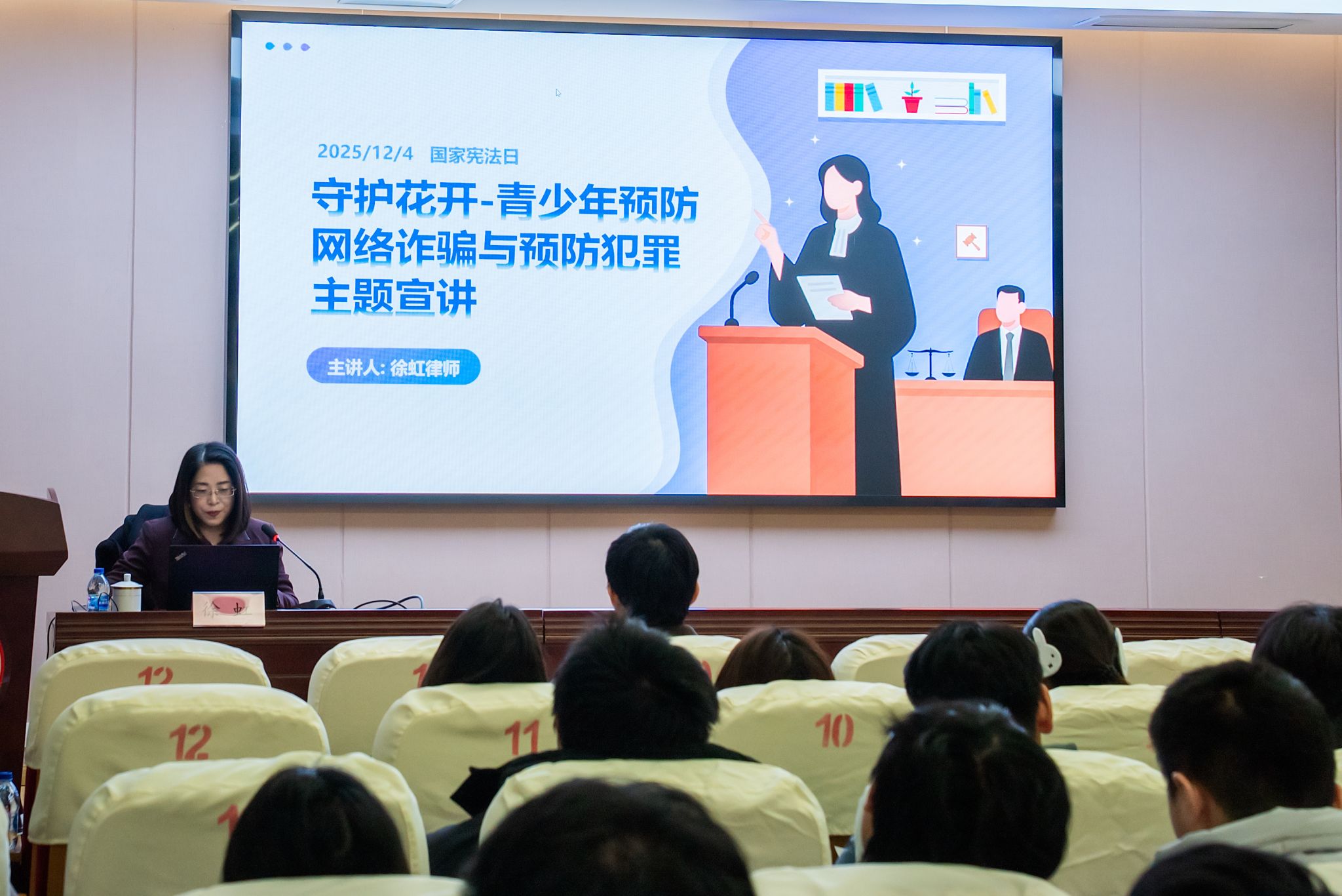 徐虹围绕预防网络诈骗与预防犯罪的主题,聚焦网络陷阱,网络行为规范要点及青少年预防犯罪等热点内容,通过典型案例剖析,互动问答等形式,深入浅出地讲解了电信网络诈骗的常见套路,网络言行边界和法律底线,引导师生增强识骗防骗能力,自觉遵守网络行为规范,现场还特别设置了“宪法晨读”环节 91天堂国产在线,组织师生共同学习宪法核心条款。