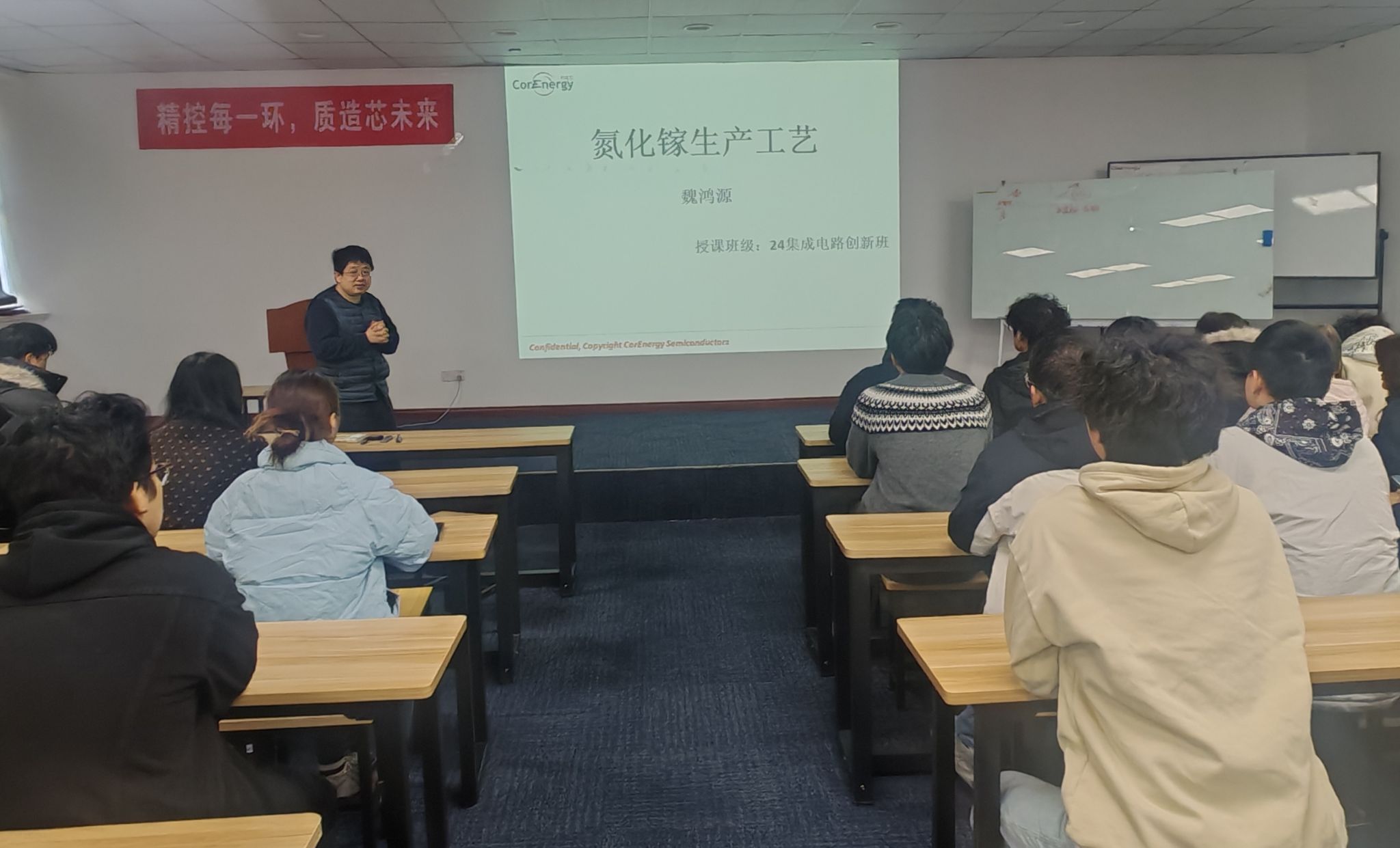 12月3日 91视频网,免费不收费看污在线观看-免费看污污-免费看污污污视频软件组织集成电路创新班师生赴江苏能华微电子科技发展有限公司进行参观交流,并聆听“氮化镓生产工艺”专题讲座,了解第三代半导体的技术特性,制备工艺及在新能源,通信等领域的应用前景,使课堂理论知识与产业实践紧密衔接,活动拓宽了学生的行业视野,增强了他们对专业的认同感与使命感,也是免费不收费看污在线观看-免费看污污-免费看污污污视频软件深化产教融合,服务地方产业发展,促进了校企协同育人的重要举措。