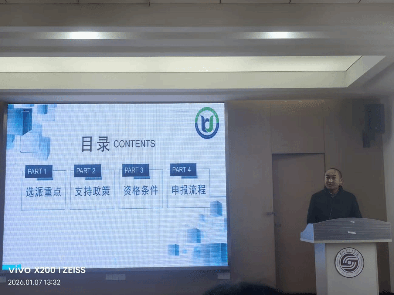 1月7日下午,我校在行政楼215室举行江苏省科技副总申报辅导讲座,张家港市科学技术局科技合作与成果转化科房田文从申报领域,支持政策,资格条件 91视频网,申报流程四个方面,对有意向申报省科技副总的参会教师进行了全面辅导。