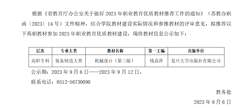 2023年职业教育优质教材建设拟推荐结果公示