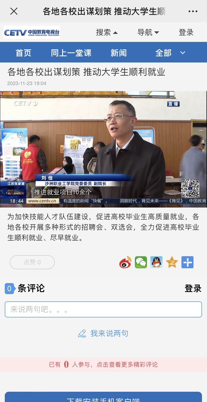 【中国教育电视台】各地各校出谋划策 推动大学生顺利就业