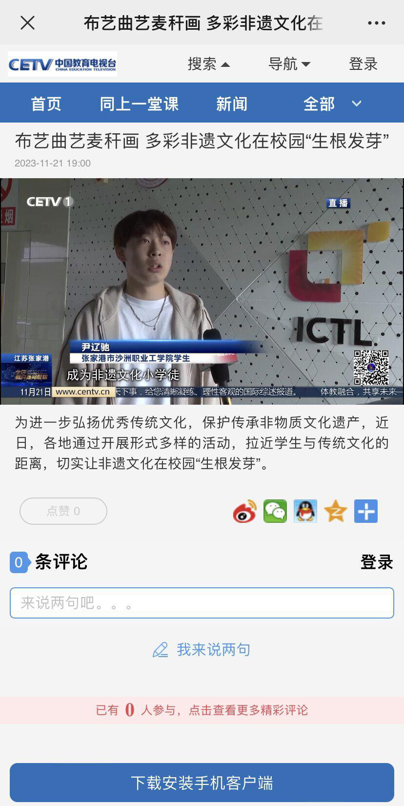 【中国教育电视台】布艺曲艺麦秆画 多彩非遗文化在校园“生根发芽”