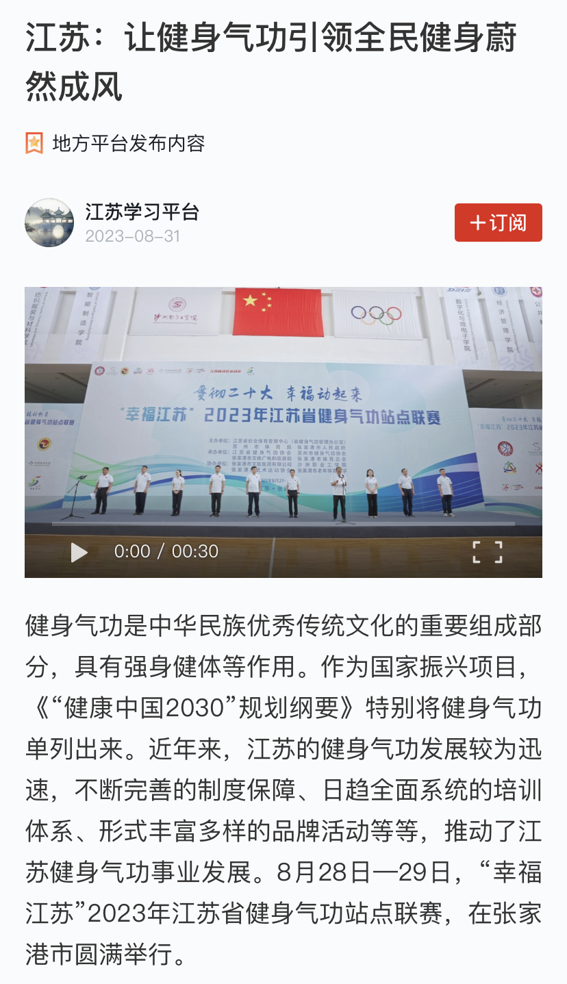 【学习强国】江苏:让健身气功引领全民健身蔚然成风