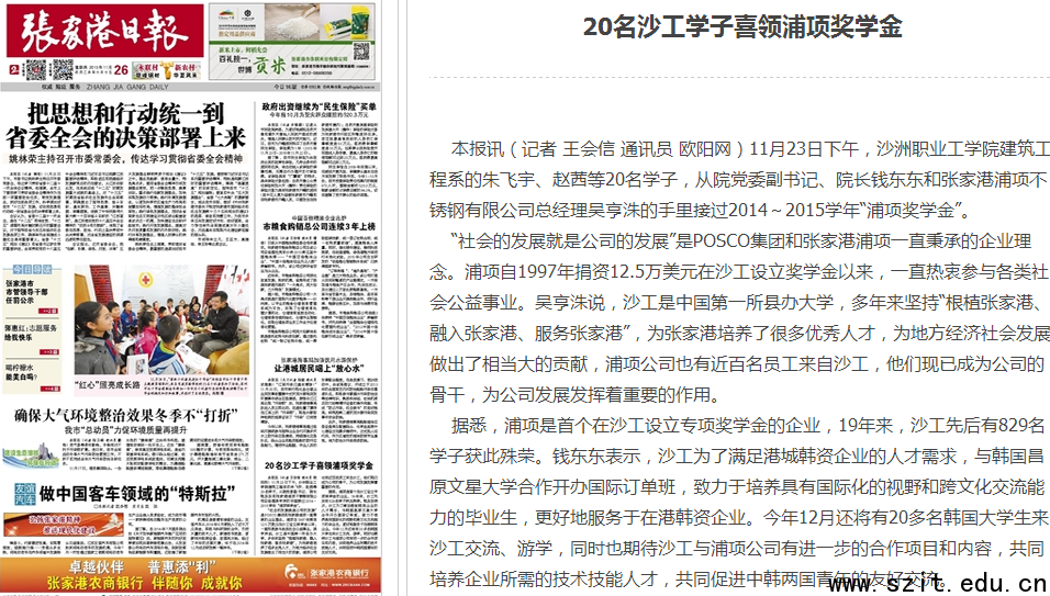 本报讯(记者 王会信 通讯员 欧阳网)11月23日下午 91视频网,免费不收费看污在线观看-免费看污污-免费看污污污视频软件建筑工程系的朱飞宇,赵茜等20名学子,从院党委副书记,院长钱东东和张家港浦项不锈钢有限公司总经理吴亨洙的手里接过2014~2015学年“浦项奖学金”。