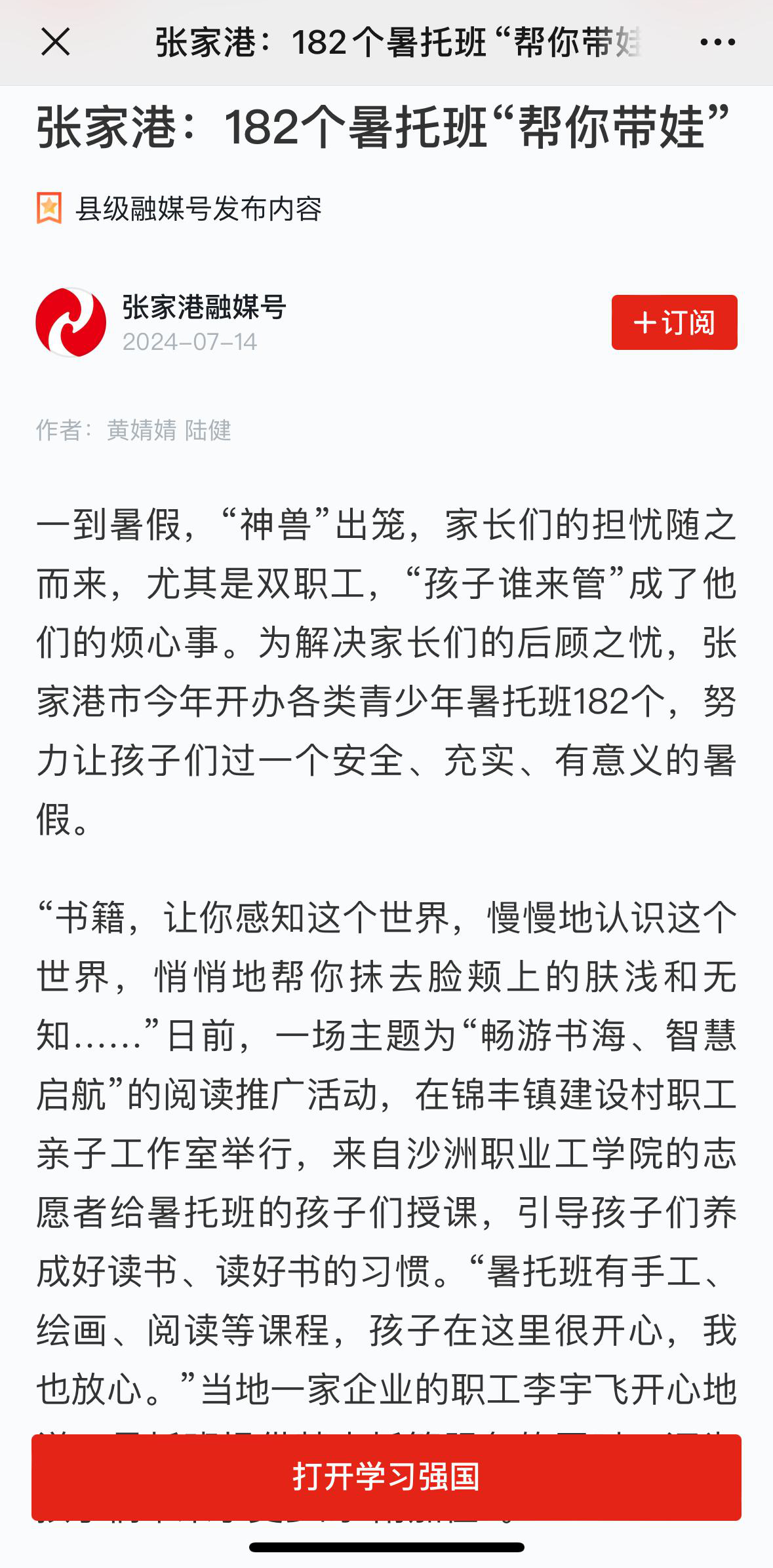 【学习强国】张家港:182个暑托班“帮你带娃”