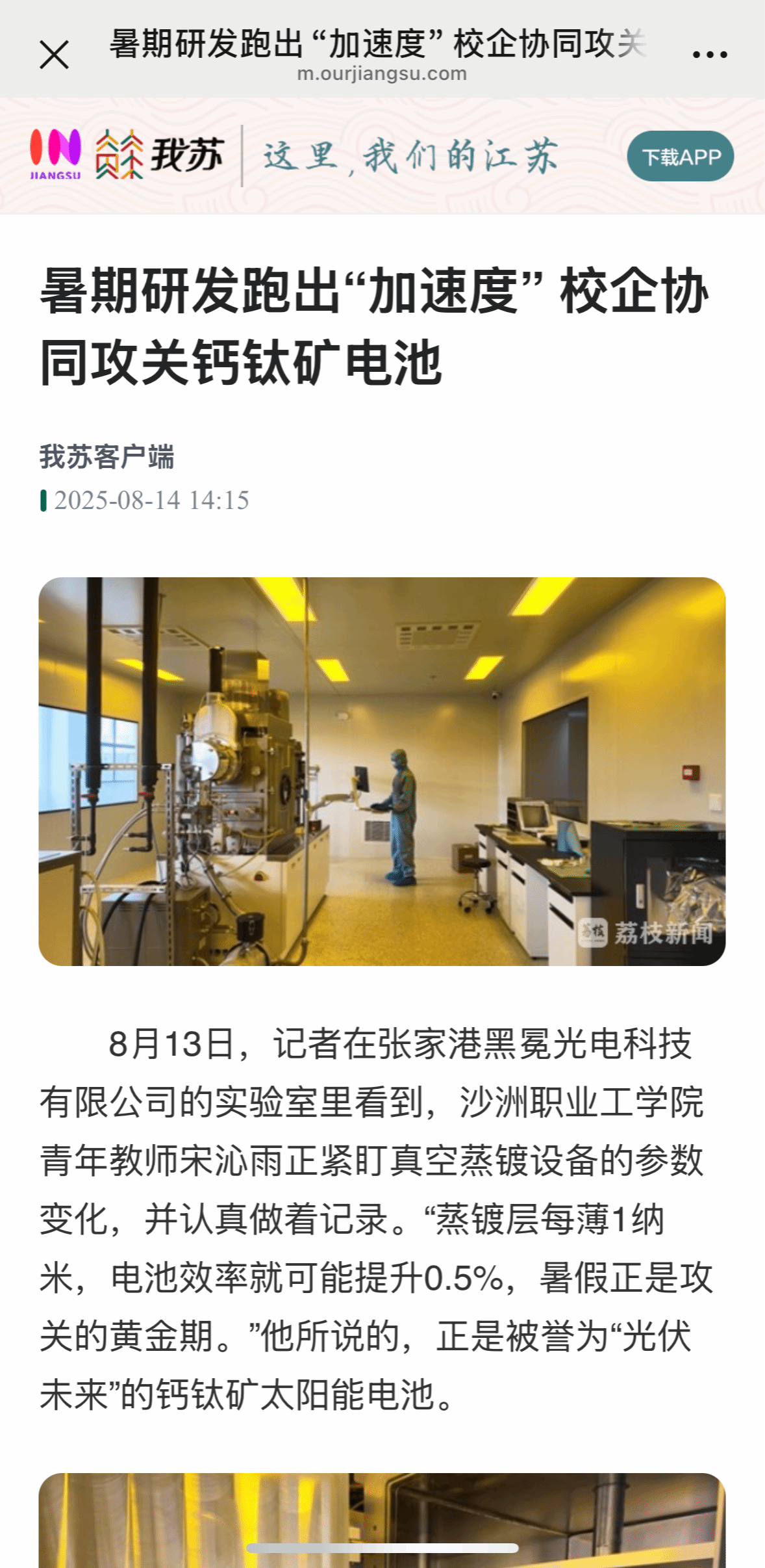 【我苏网】暑期研发跑出“加速度” 校企协同攻关钙钛矿电池