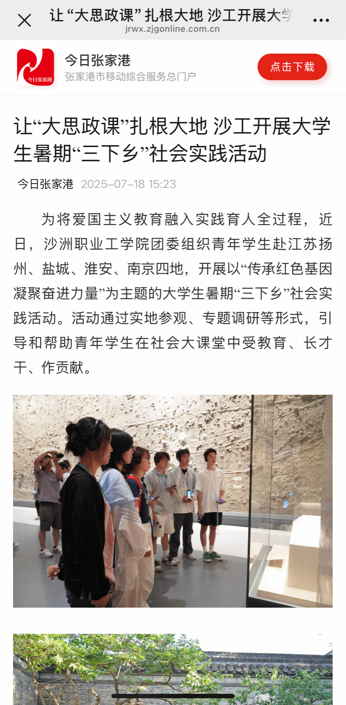 【今日张家港】让“大思政课”扎根大地 沙工开展大学生暑期“三下乡”社会实践活动