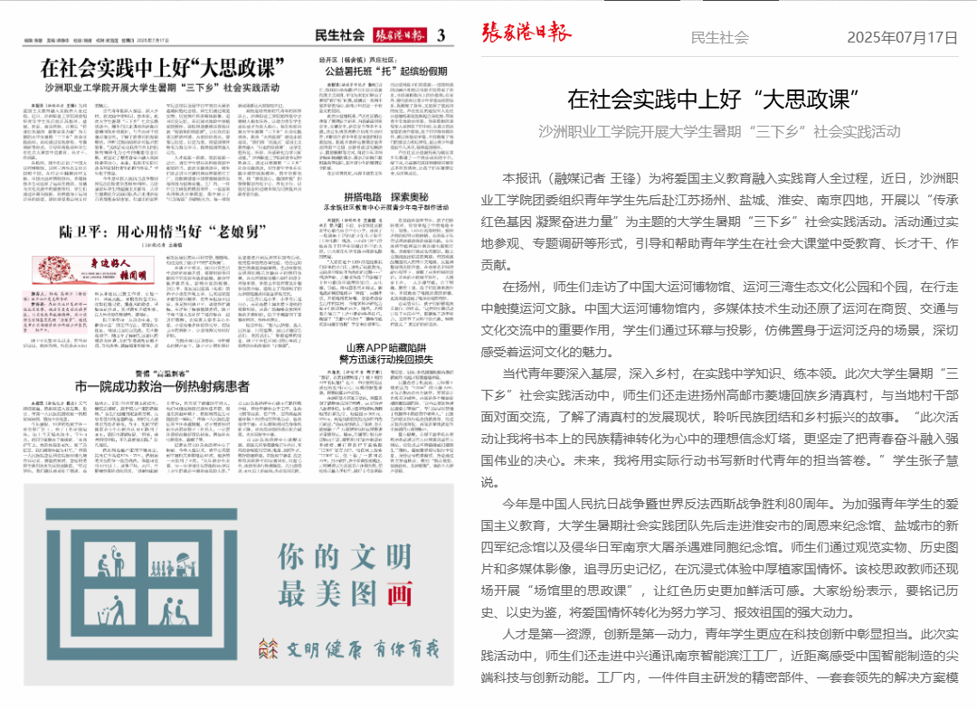 【张家港日报】在社会实践中上好“大思政课” 免费不收费看污在线观看-免费看污污-免费看污污污视频软件开展大学生暑期“三下乡”社会实践活动